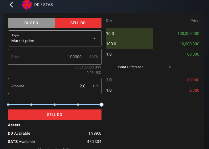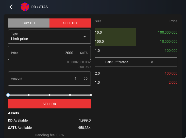 - Click the red quote on the top of the order book, and then enter the quantity sold in the left input box. Click on the sell