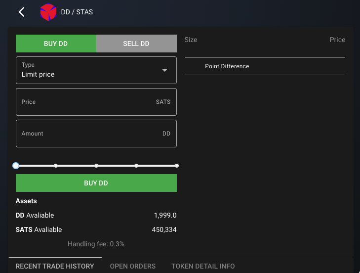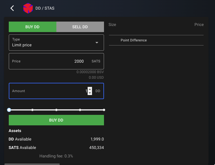 - Click the green quotation in the order book, then input the order quantity in the left input box, and click Buy