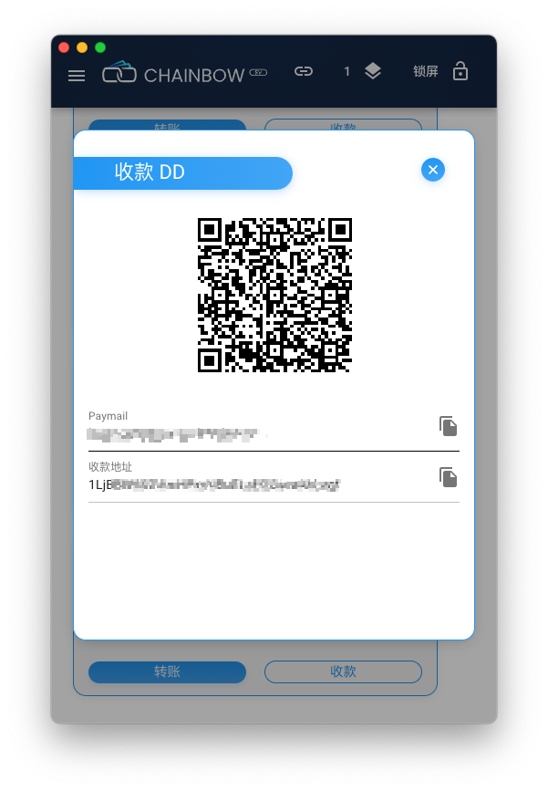 2.也可以点击复制按钮将你的收款地址发送给对方