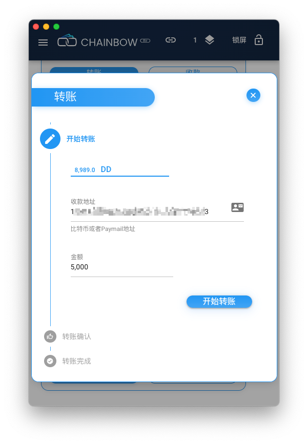 (注意确认对方的收款人地址,转错地址就找不回了)